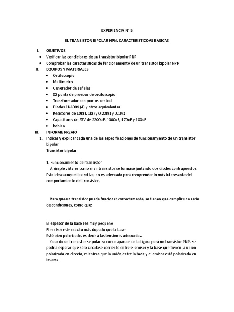 5. Indicar las diferencias más importantes entre el circuito de este experimento (transistor