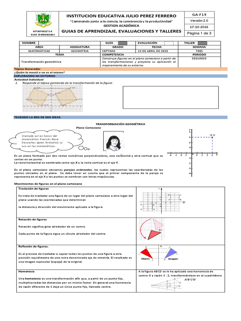MATEMÁTICAS GEOMETRIA SEPTIMO 23 DE ABRIL DE 2018 TRES