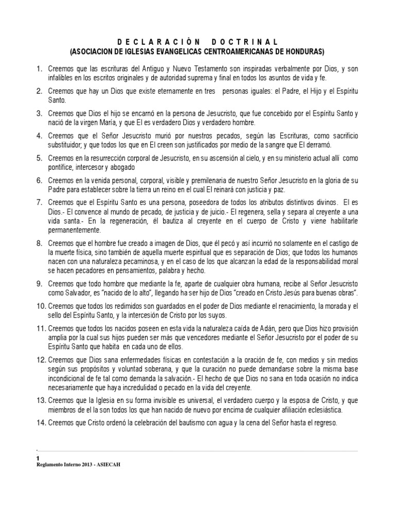 1. Creemos que las escrituras del Antiguo y Nuevo Testamento son inspiradas verbalmente por Dios, y son
