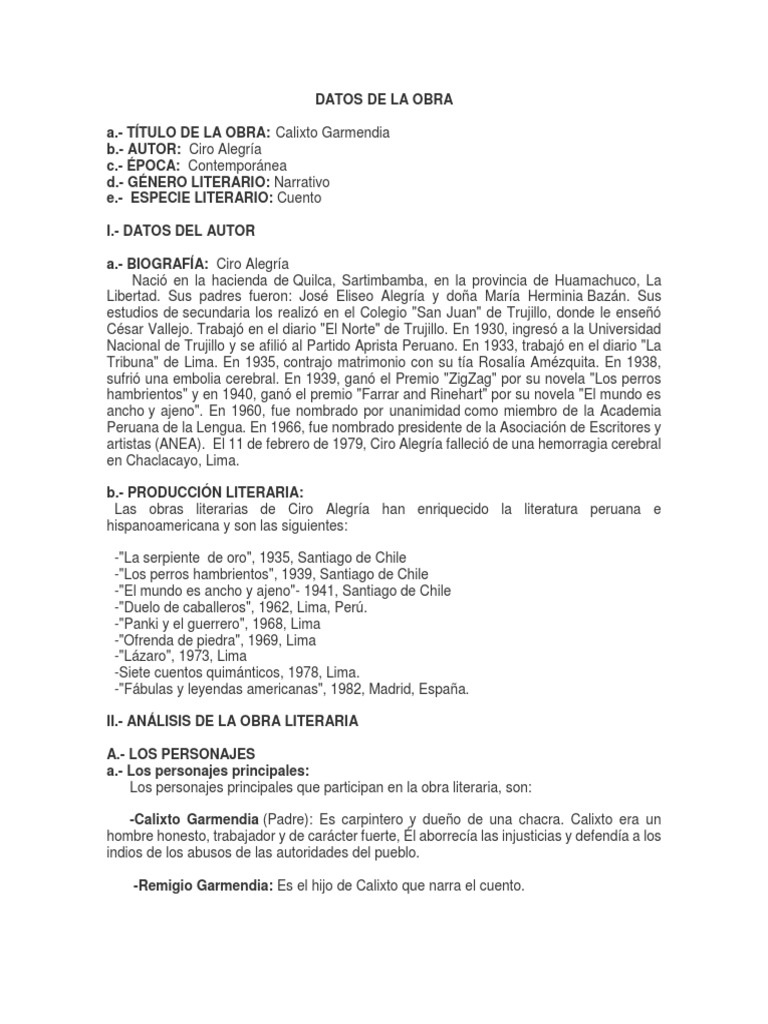 El escritor Ciro Alegría en su cuento literario "Calixto Garmendia cuestiona los abusos