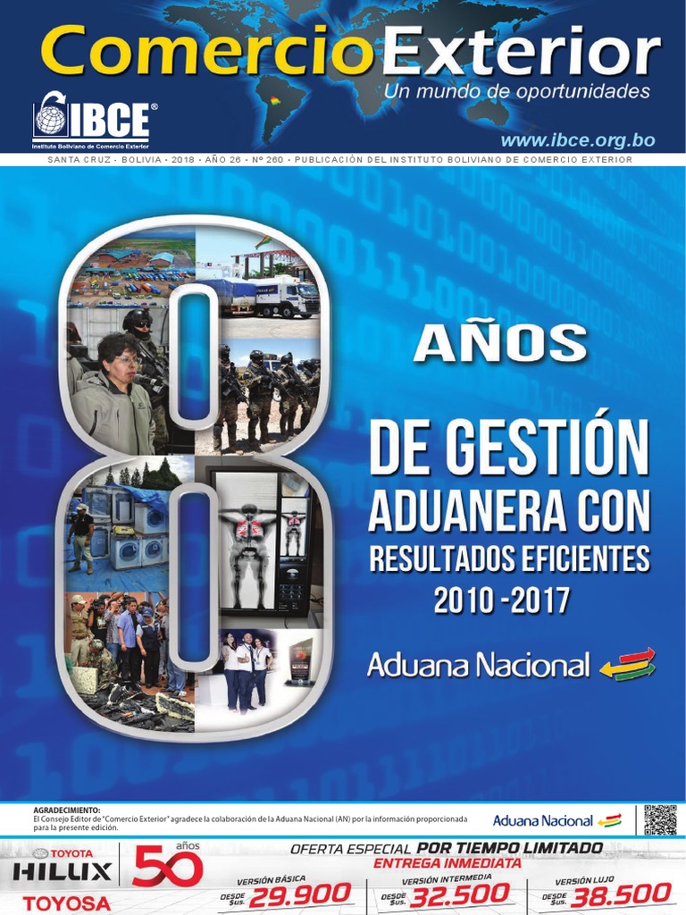 SAN TA CRUZ - B OL IV IA • 2 0 1 8 • A Ñ O 2 6 • N º 260 • P U B LIC A C IÓN D E L IN S TITU TO B OLIV IA N O DE CO M ERCI O EXTERI O R
