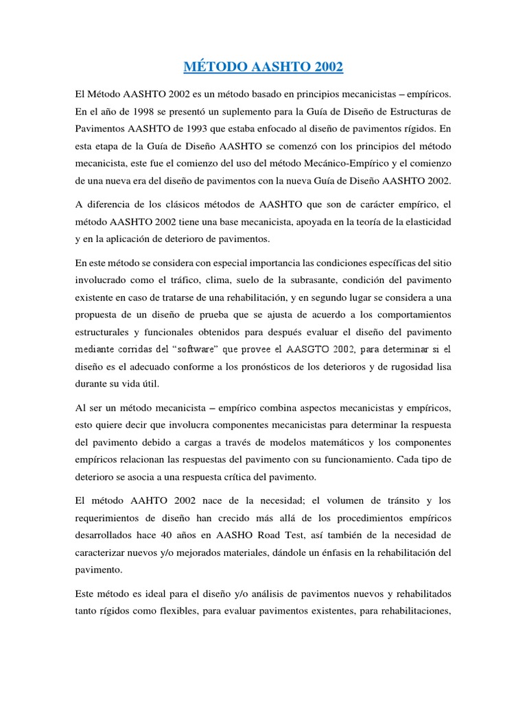 El Método AASHTO 2002 es un método basado en principios mecanicistas – empíricos.