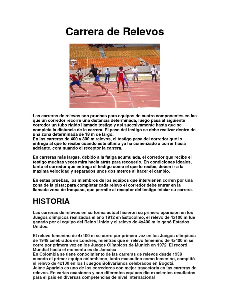 En Colombia se tiene conocimiento de las carreras de relevos desde 1938