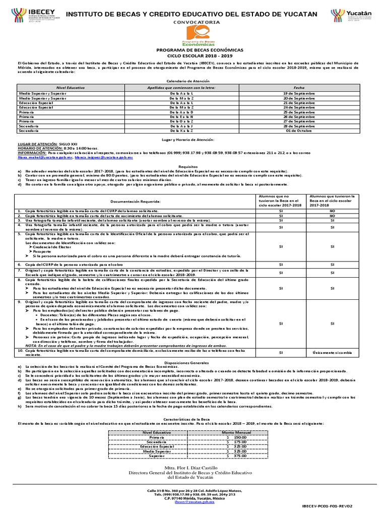 Mérida, interesados en obtener una beca, a participar en el proceso de otorgamiento del Programa de Becas Económicas para el ciclo escolar 2018-2019, mismo que se realizará de