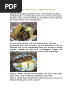 La comida es fría, se prepara a base de cuy al horno, gallina hervida, salchicha serrana, queso fresco, cancha tostada,