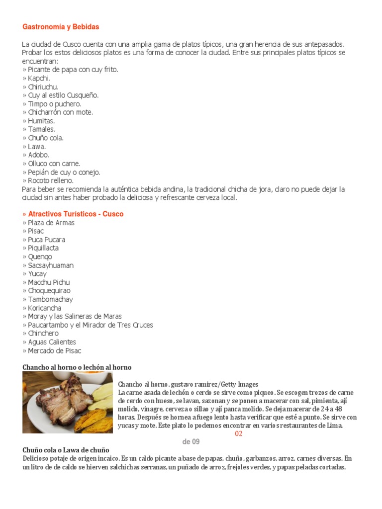 La ciudad de Cusco cuenta con una amplia gama de platos típicos, una gran herencia de sus antepasados.