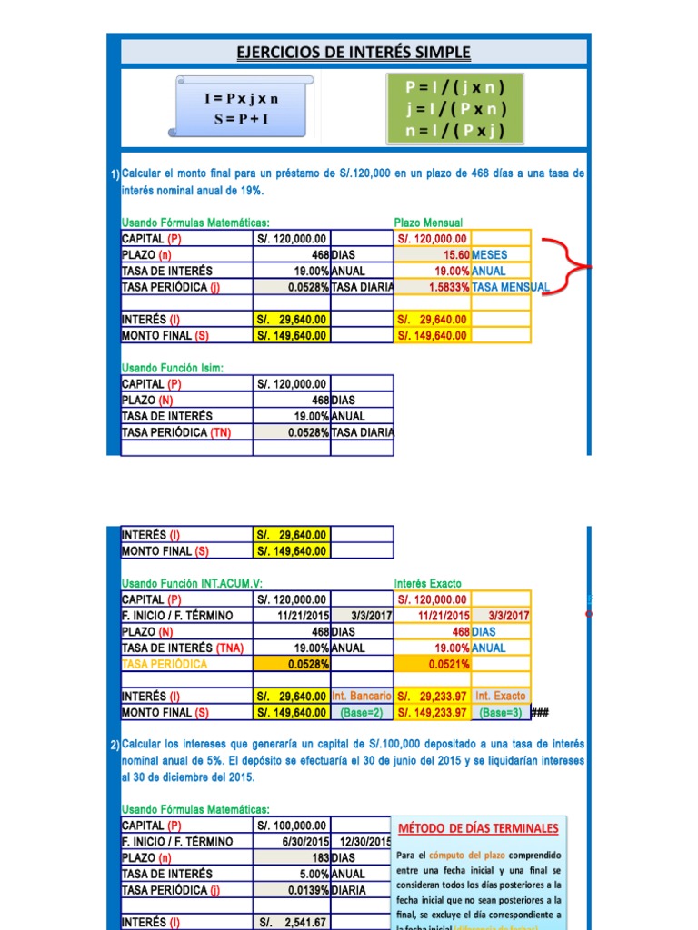 INTERÉS (I) S/. 29,640.00 Int. Bancario S/. 29,233.97 Int. Exacto