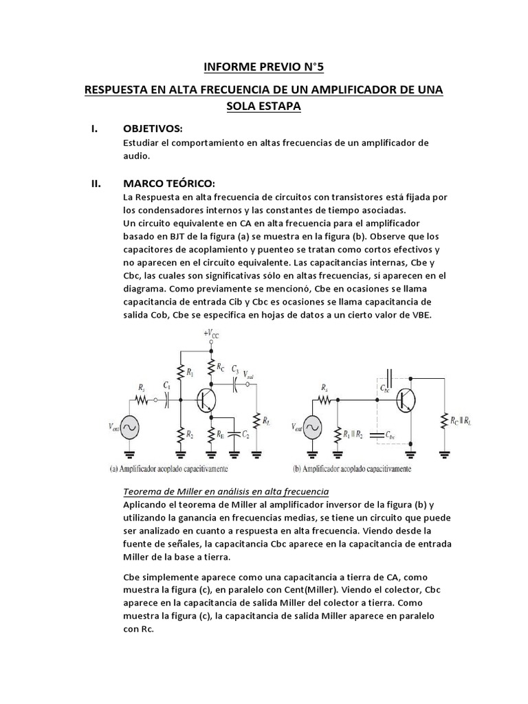 RESPUESTA EN ALTA FRECUENCIA DE UN AMPLIFICADOR DE UNA