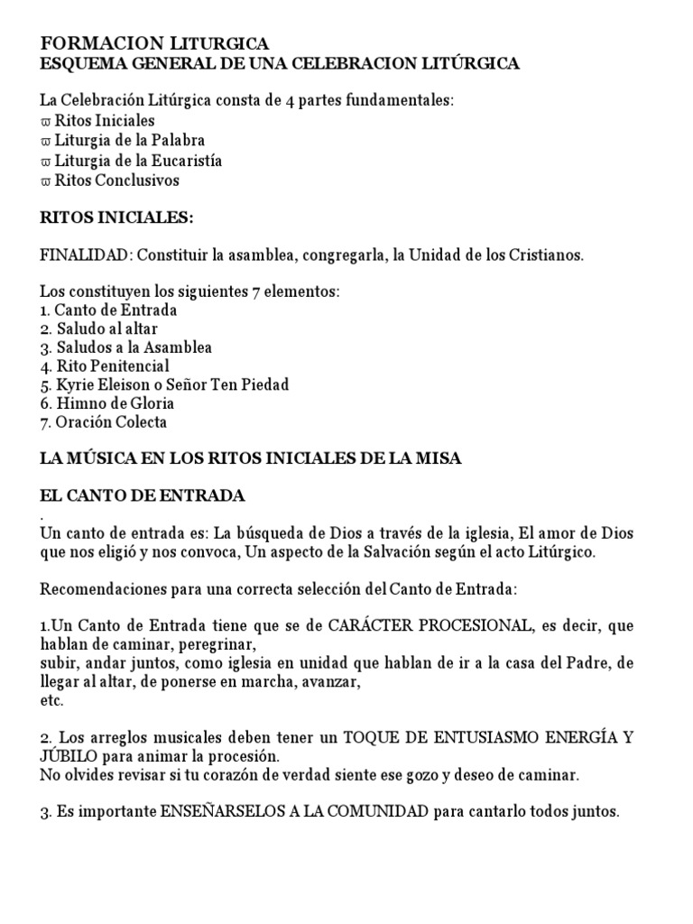 [Link] Canto de Entrada tiene que se de CARÁCTER PROCESIONAL, es decir, que
