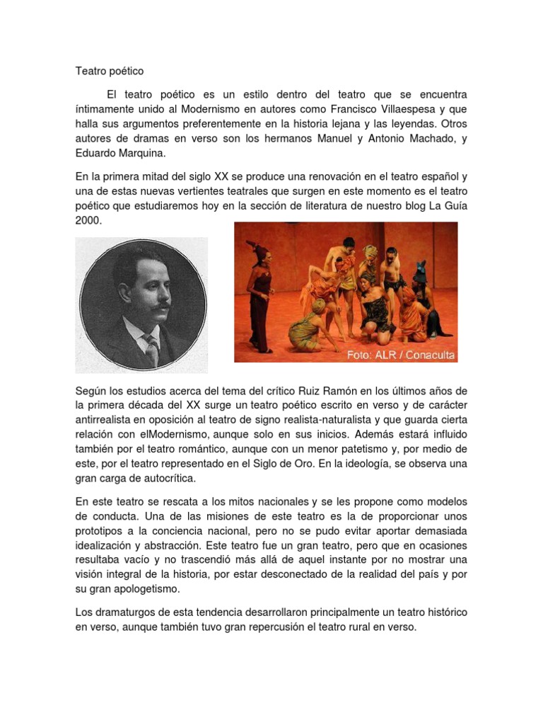 la primera década del XX surge un teatro poético escrito en verso y de carácter
