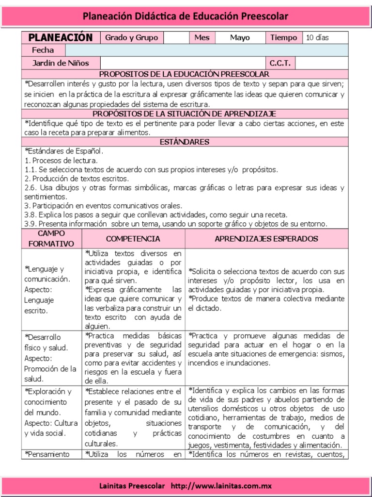 PLANEACIÓN Grado y Grupo Mes Mayo Tiempo 10 días