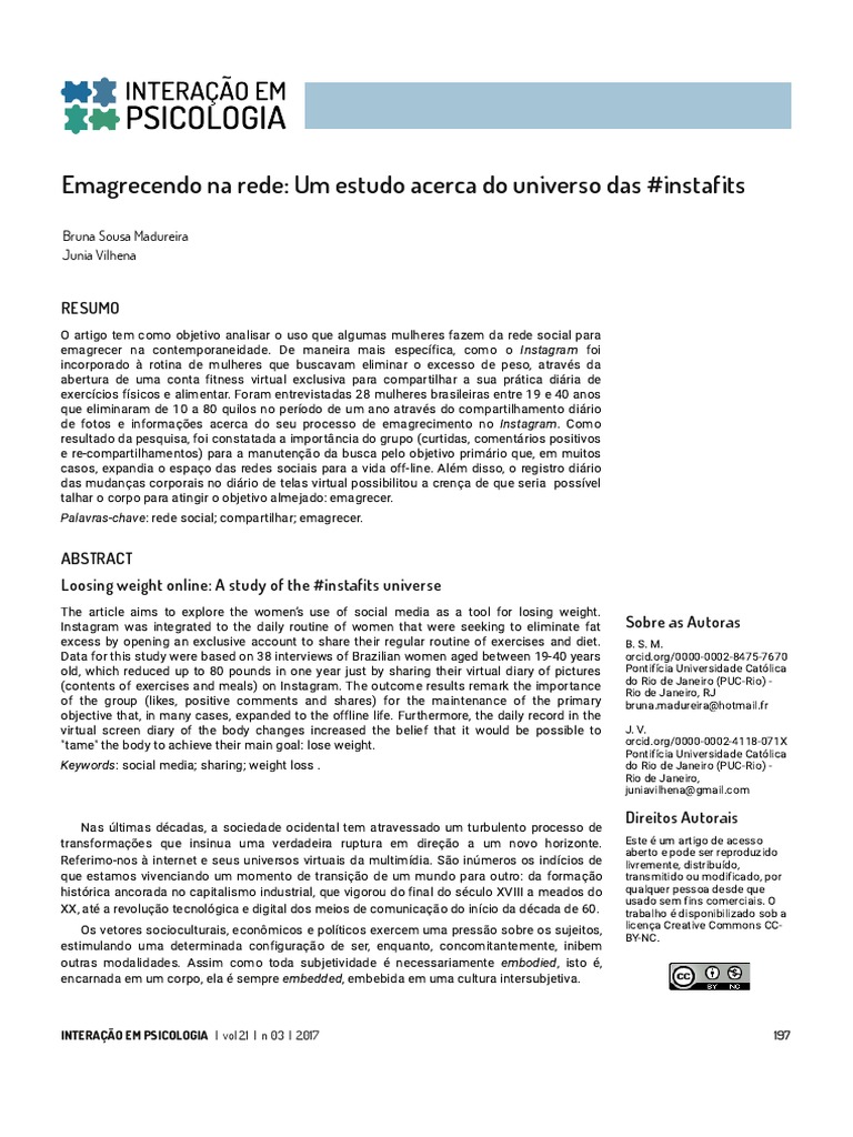 Keywords : social media; sharing; weight loss . do Rio de Janeiro (PUC-Rio) -
