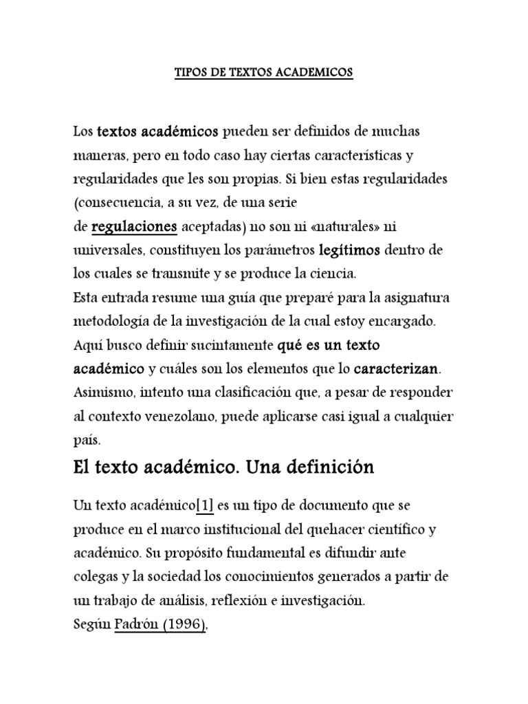 Los textos académicos pueden ser definidos de muchas maneras, pero en