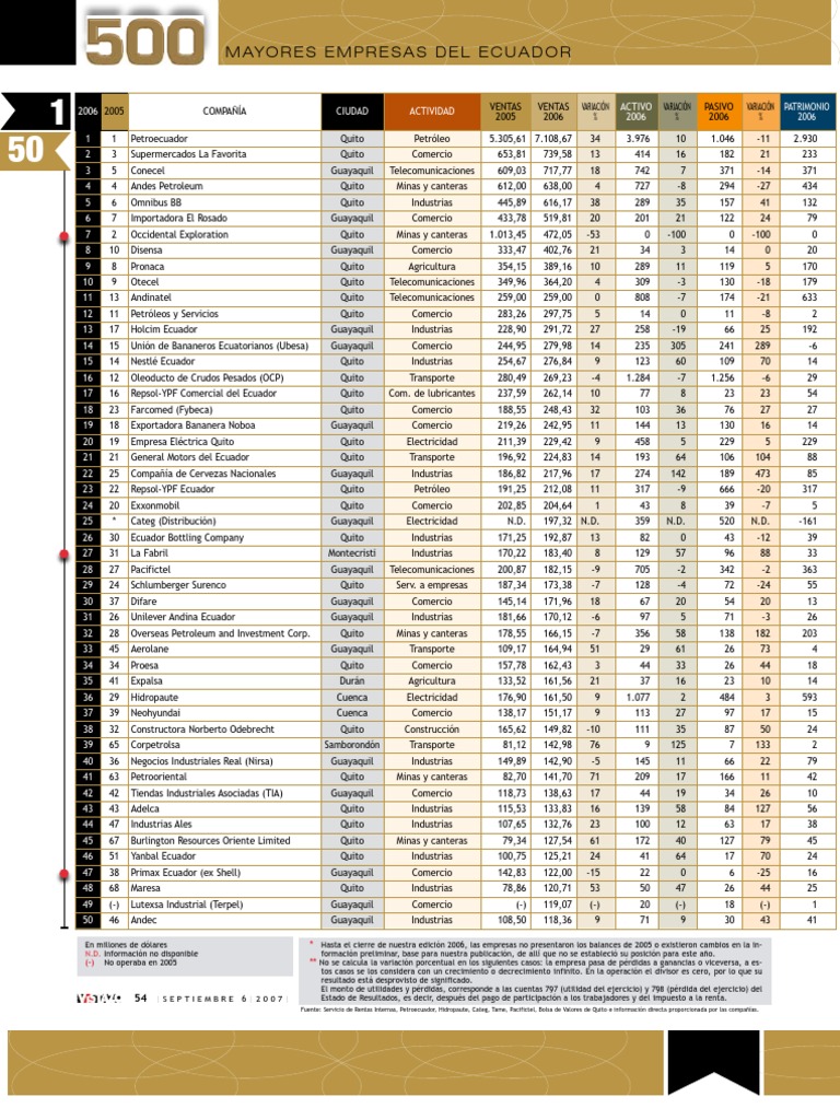 1 1 Petroecuador Quito Petróleo 5.305,61 7.108,67 34 3.976 10 1.046 -11 2.930