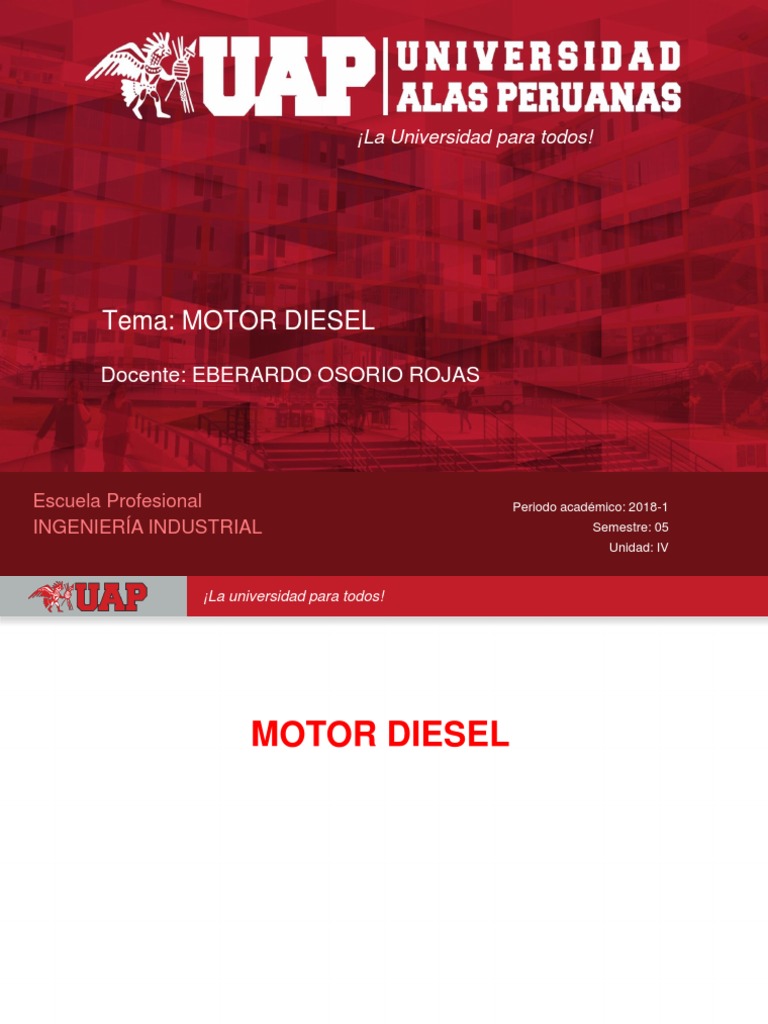 El motor diésel es un motor térmico que tiene combustión interna alternativa que
