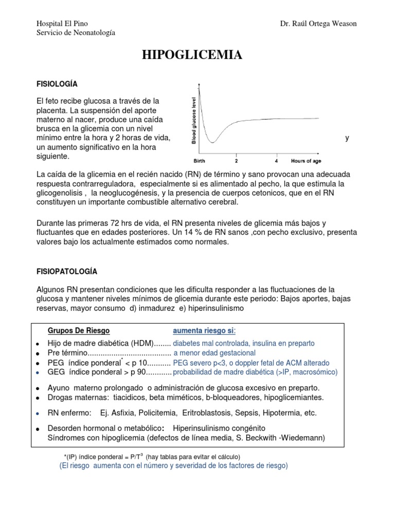 1. Sería mejor evitar medición de glicemia entre 2-3 horas después del nacimiento dado que lo normal