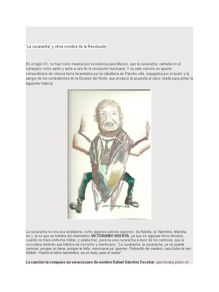 recordaba también sus hábitos de borracho y marihuano: “La cucaracha, la cucaracha, ya no puede