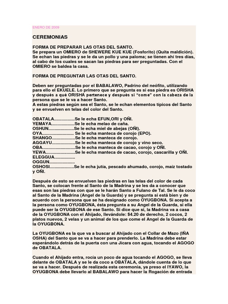 OSHUN de lo que se va a hacer y se le da coco. Terminada esta parte, el