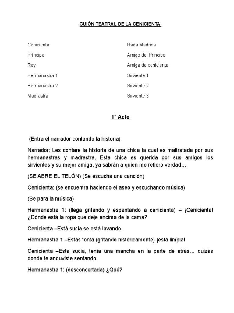 Hermanastra 1: (llega gritando y espantando a cenicienta) – ¡Cenicienta!