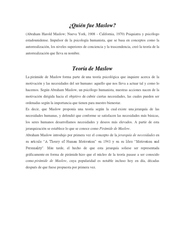 La pirámide de Maslow forma parte de una teoría psicológica que inquiere acerca de la