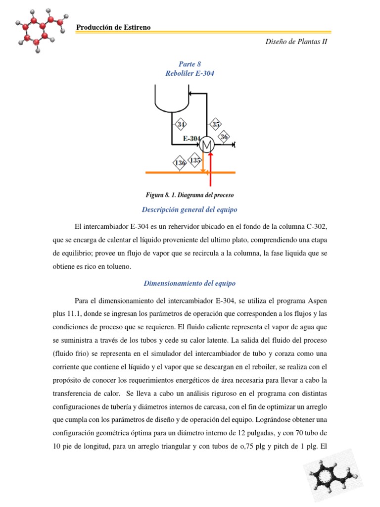 Observaciones: El intercambiador de calor E-304 es un reboiler que sirve para calentar el líquido