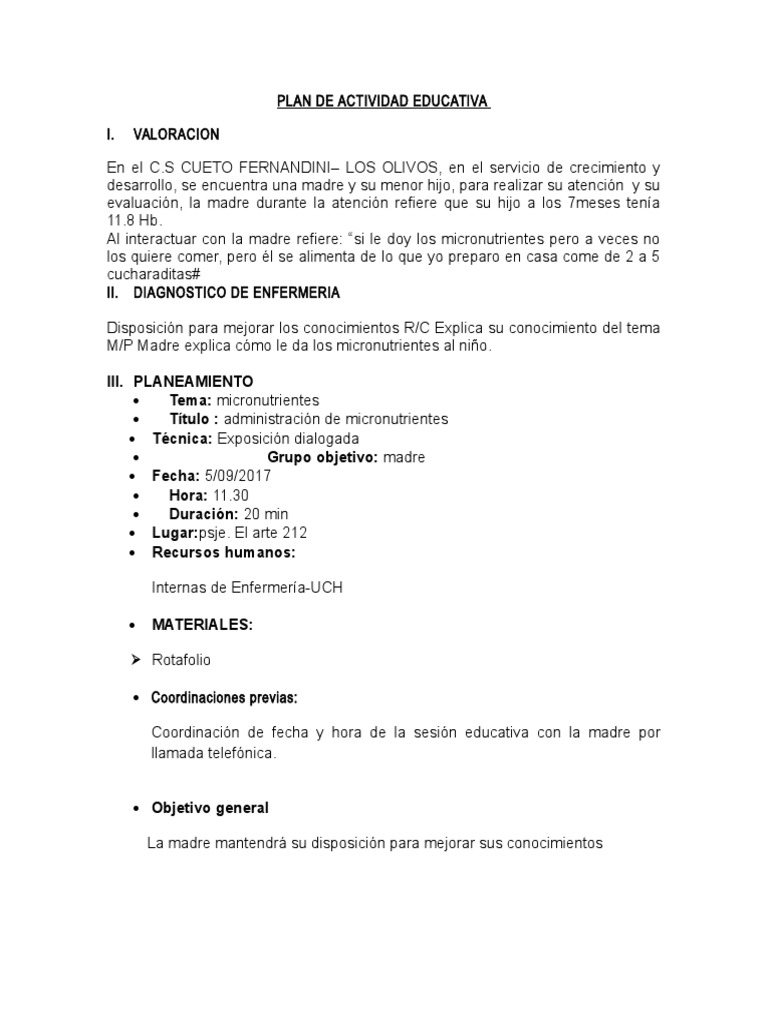 de actividades micronutrientes y le agradecemos por el tiempo que nos dio. 2 min La señora aplica lo explicado