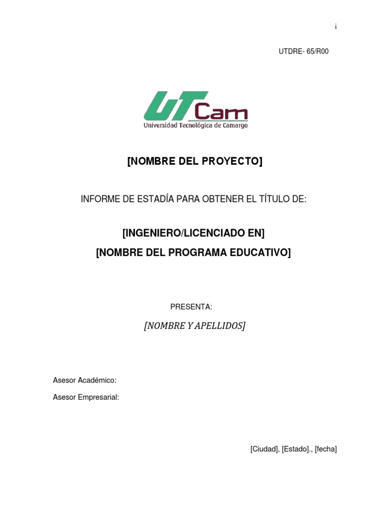 de Informe de Estadía, que se te entregará al final, después que
