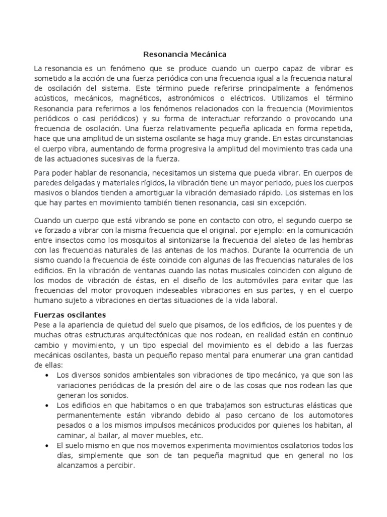 sistema”. En este sentido la resonancia mecánica, no es deseable por sus efectos.
