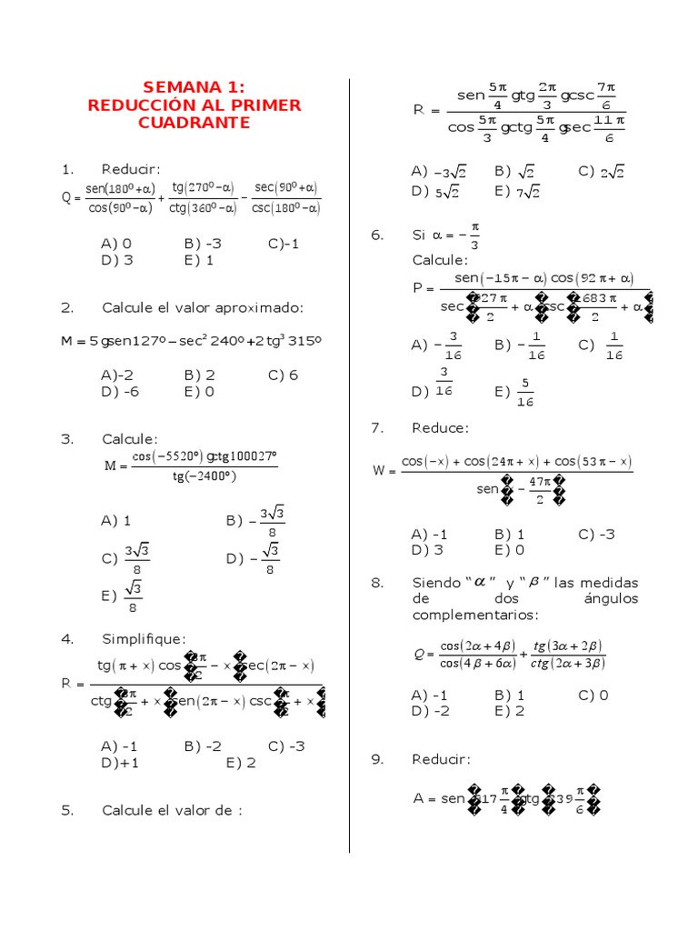 Ejercicios de Trigonometría y Reducción de Ángulos