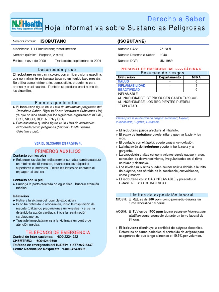 Health (Departamento de Salud de Nueva Jersey). Las si el isobutano tiene la capacidad de afectar a la salud