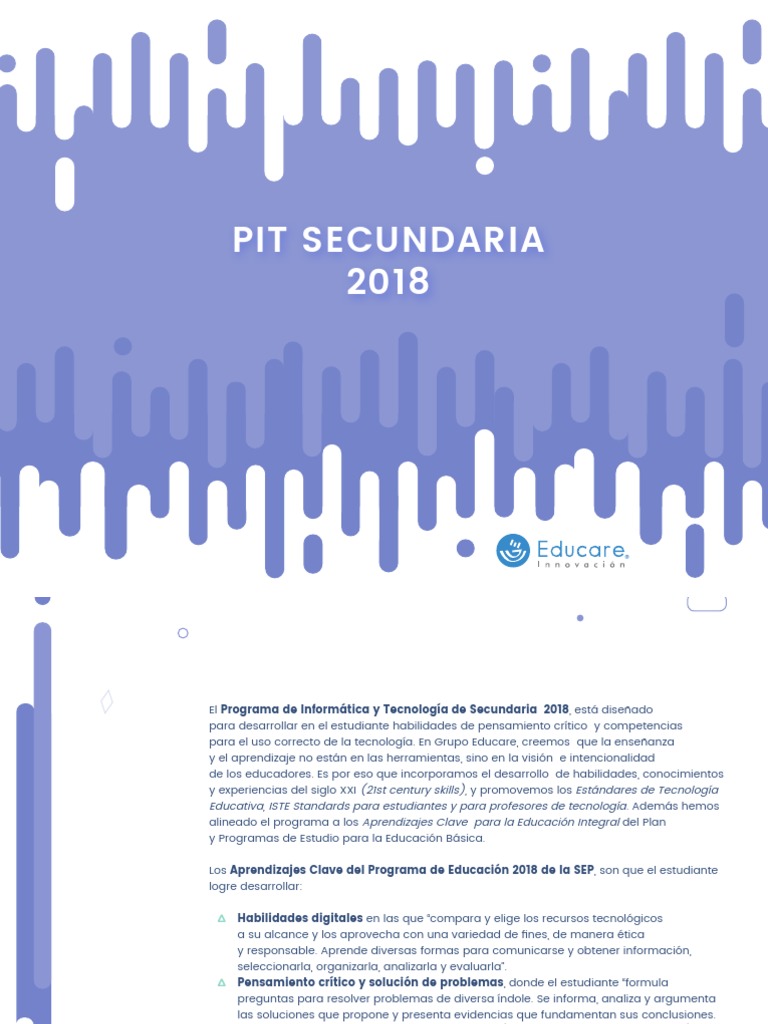 El Programa de Informática y Tecnología de Secundaria 2018, está diseñado