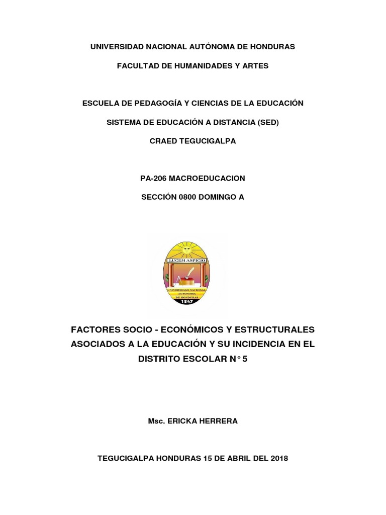 económicos y estructurales, asociados a la educación y su incidencia en el