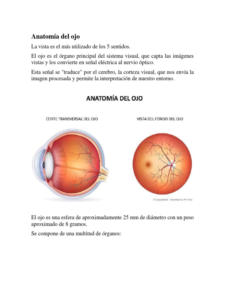 El ojo es una esfera de aproximadamente 25 mm de diámetro con un peso