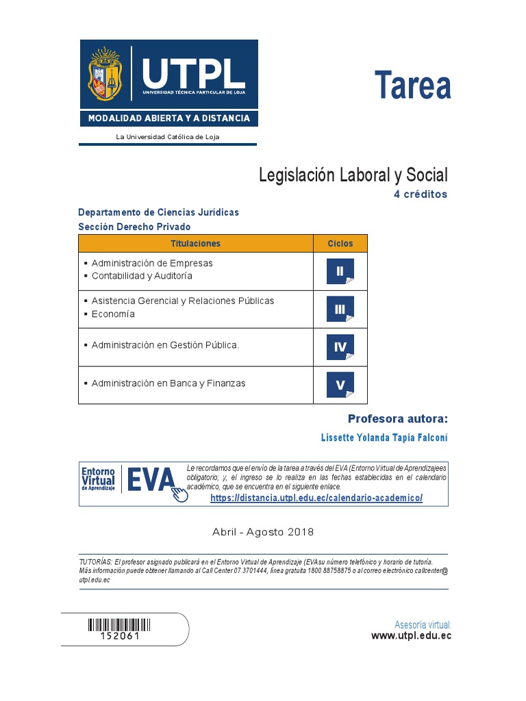 con la Legislación Laboral y Social, a través de la comprensión de los