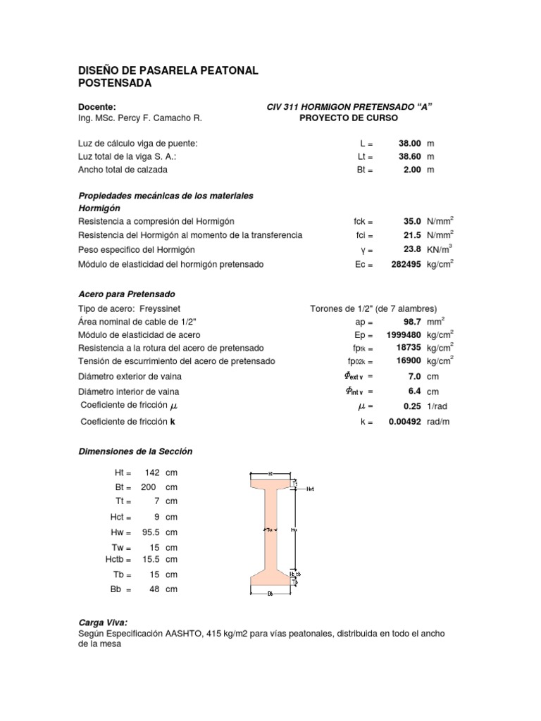 Docente: CIV 311 HORMIGON PRETENSADO “A”