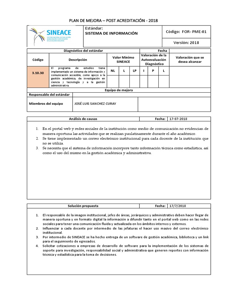 PLAN DE MEJORA – POST ACREDITACIÓN - 2018