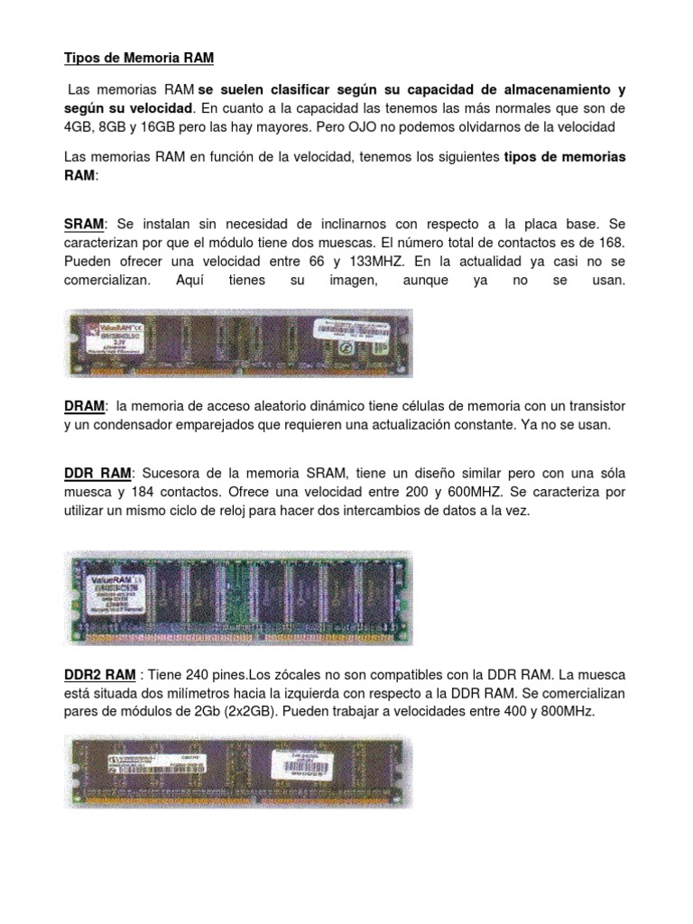 Las memorias RAM en función de la velocidad, tenemos los siguientes tipos de memorias