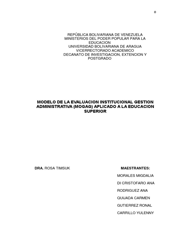Modelo de evaluación Institucional (Gestión Administración Mogag)
