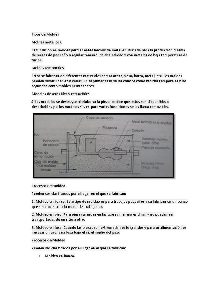 Estos se fabrican de diferentes materiales como: arena, yeso, barro, metal, etc. Los moldes