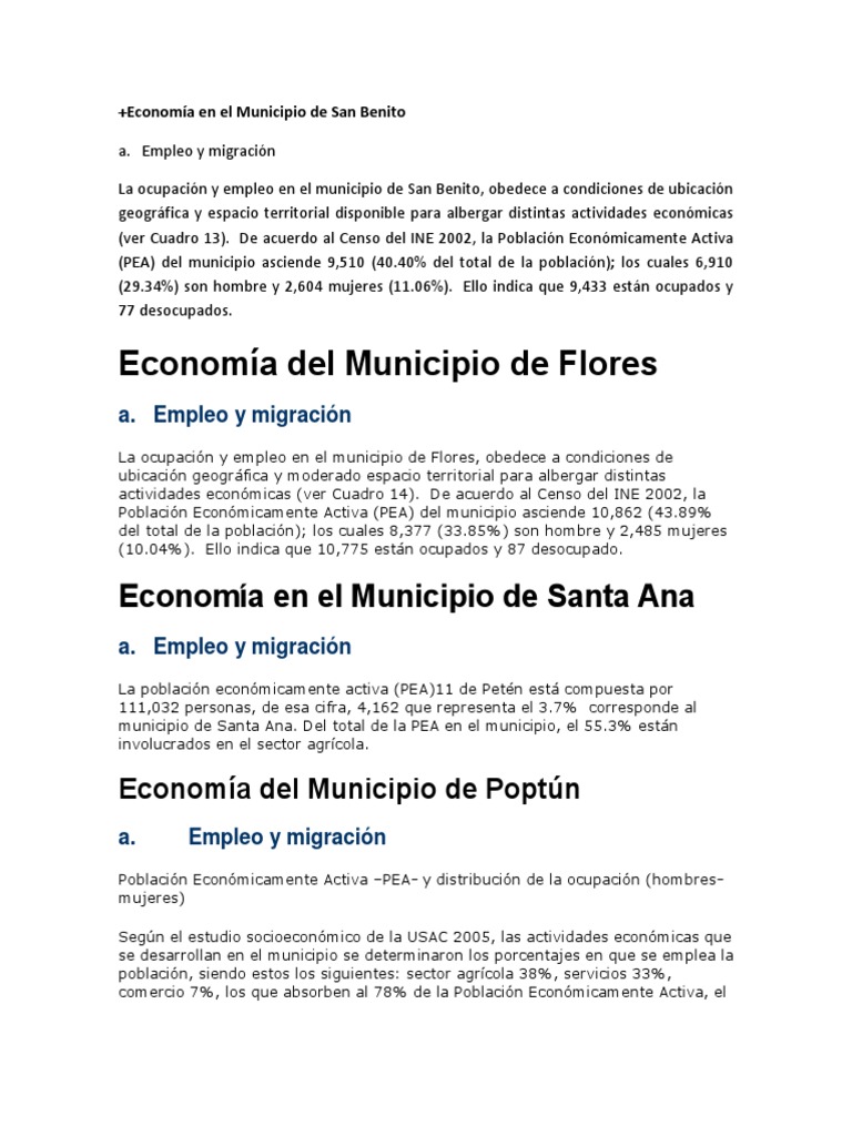 La ocupación y empleo en el municipio de San Benito, obedece a condiciones de ubicación