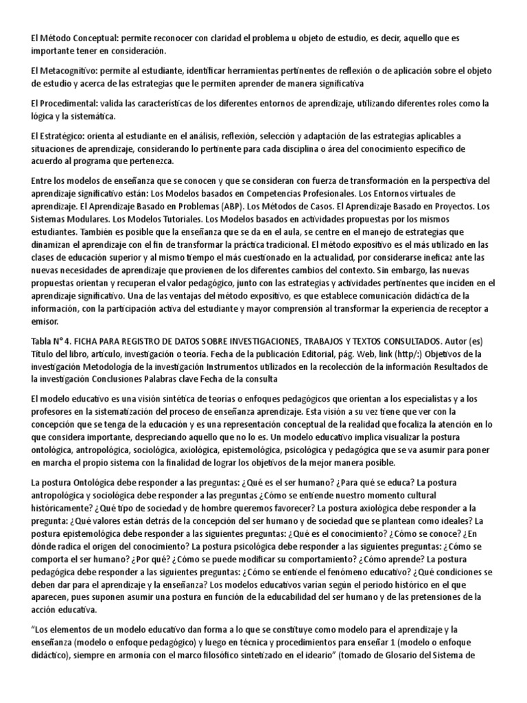 enseñanza (modelo o enfoque pedagógico) y luego en técnica y procedimientos para enseñar 1 (modelo o enfoque
