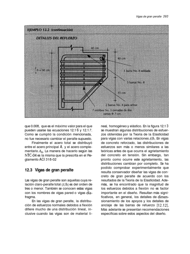 La definición de vigas de gran peralte está ba- En el ejemplo 12.3 se ilustra el dimen-
