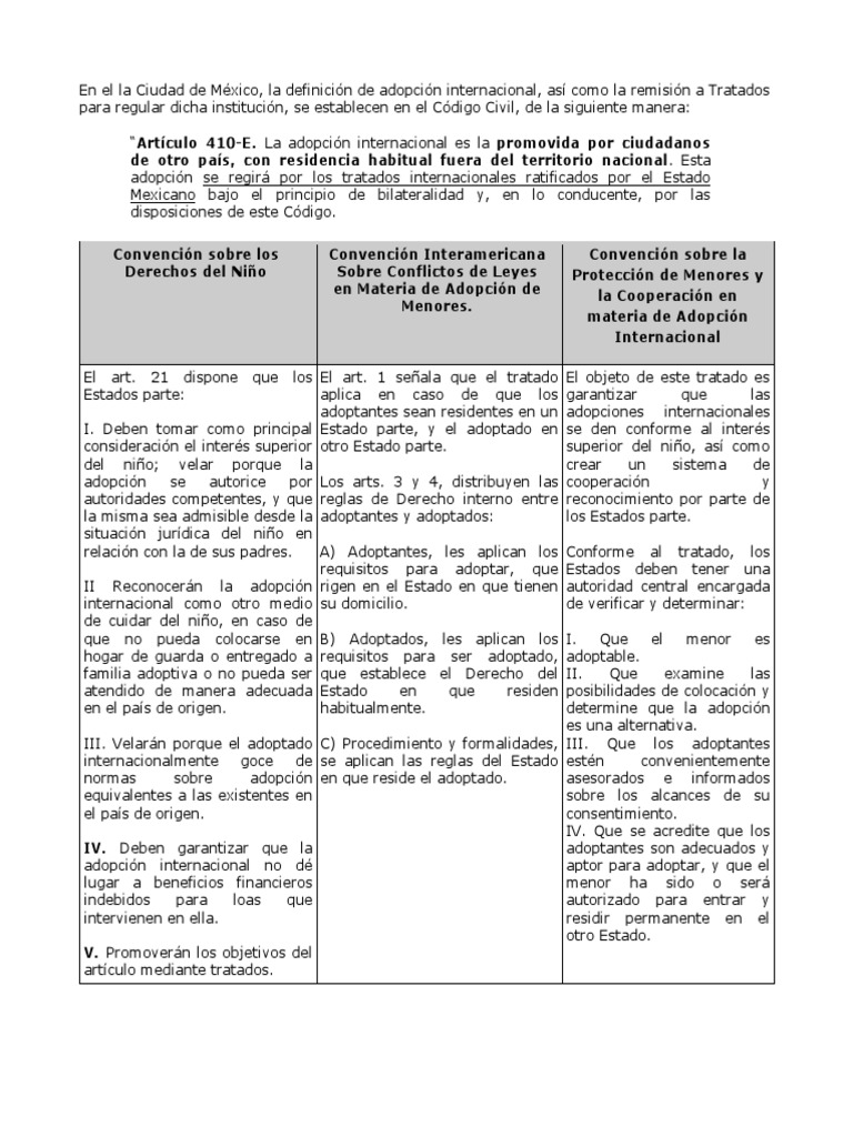 En el la Ciudad de México, la definición de adopción internacional, así como la remisión a Tratados