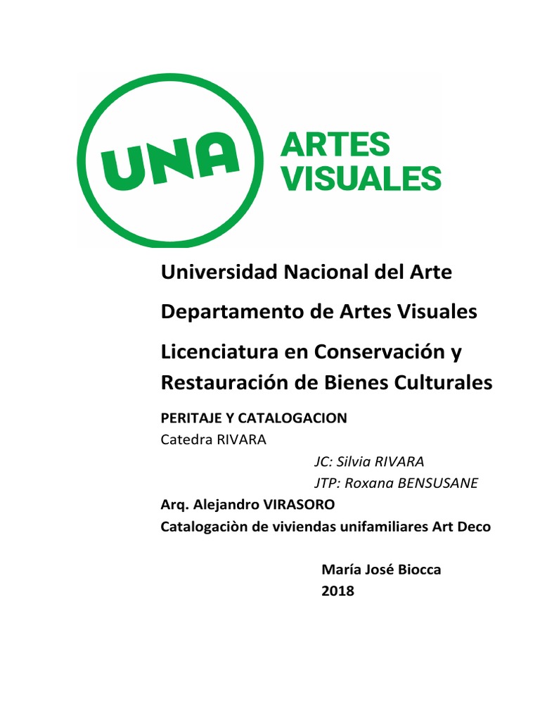 Catalogaciòn de viviendas unifamiliares Art Deco
