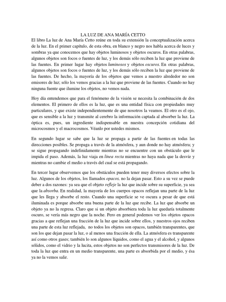 de la luz. En el primer capítulo, de esta obra, en blanco y negro nos habla acerca de luces y