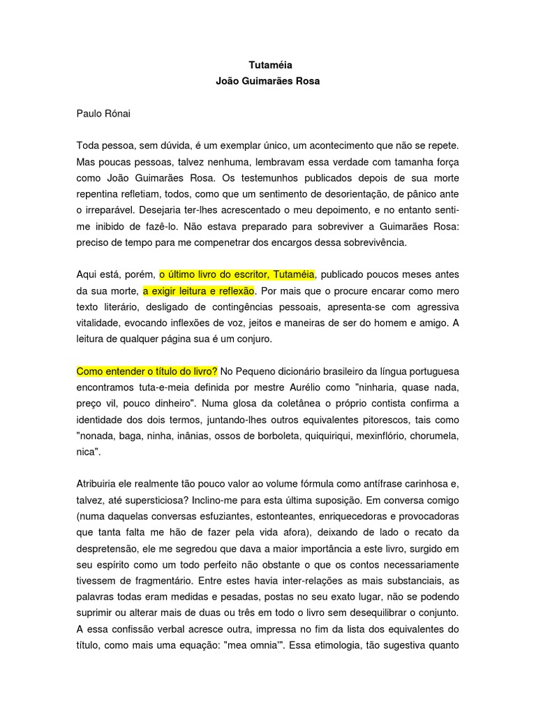 Aqui está, porém, o último livro do escritor, Tutaméia, publicado poucos meses antes