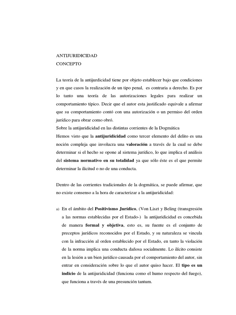 antijuridicidad tiene carácter objetivo...”una contradicción objetiva con los