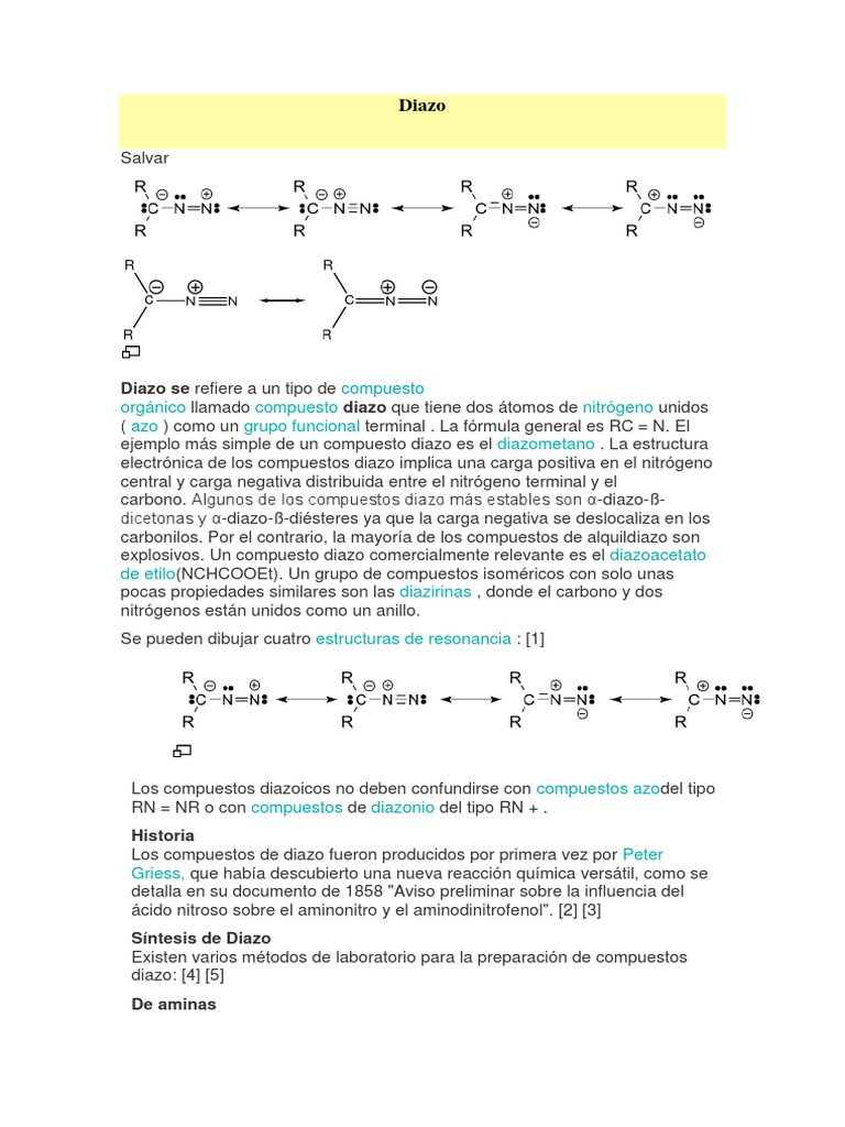 orgánico llamado compuesto diazo que tiene dos átomos de nitrógeno unidos