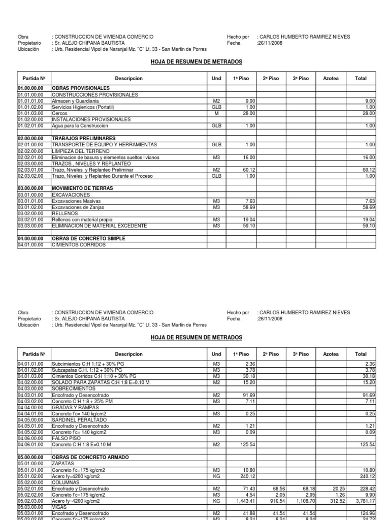 Obra : CONSTRUCCION DE VIVIENDA COMERCIO Hecho por : CARLOS HUMBERTO RAMIREZ NIEVES