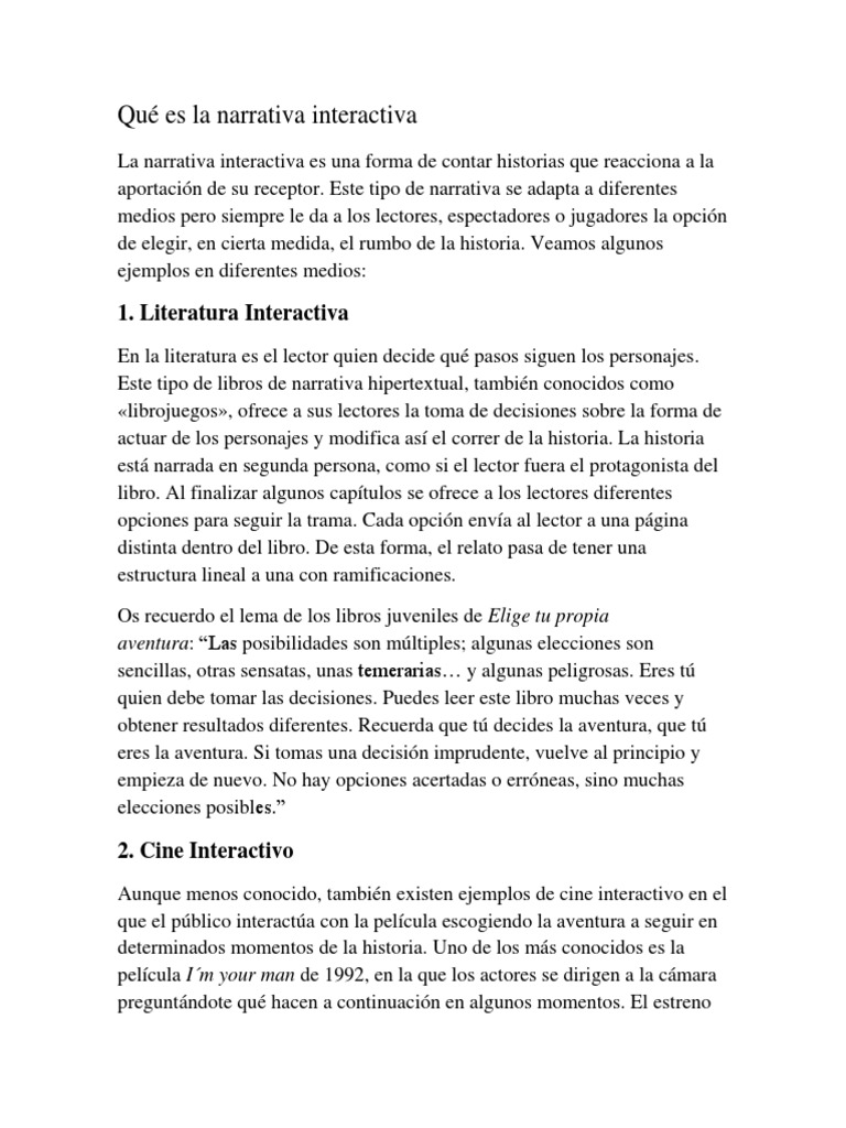 aportación de su receptor. Este tipo de narrativa se adapta a diferentes